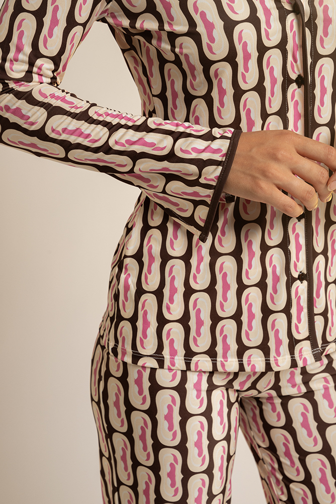 Camisa con cuello largo y manga ancha. Cuello de camisa largo con hilera de botones. Manga larga con abertura en la zona final que genera movimiento. Tejido compuesto por 97% PES y 3% EA.